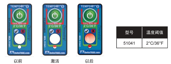 TempDot™ Minus標(biāo)簽需存儲在室溫下,并且必須在反應(yīng)溫度 以上被激活。激活是通過用手指推壓,標(biāo)簽 底部的小窗口變?yōu)榧t色或部分變紅色以指示激活,但激活后并不需要保持紅色。當(dāng)使用了上述反應(yīng)溫度 標(biāo)簽的產(chǎn)品暴露于閾值以下的溫度,白色的大窗口變?yōu)榧t色或部分紅色,在反應(yīng)溫度 以上將溫度標(biāo)簽用 于產(chǎn)品。如果一個產(chǎn)品暴露于閾值以下的溫度,白色的大窗口變紅色或部分紅色,TempDot™ Minus標(biāo)簽 提供即時的視覺指示。為達(dá)到最佳效果,標(biāo)簽應(yīng)保持垂直位置,其反應(yīng)期間,紅色箭頭須指向上方。