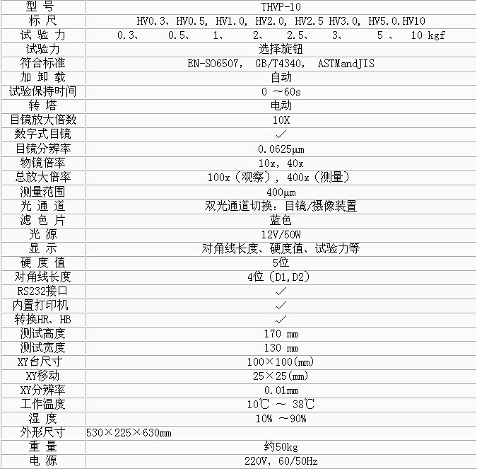 產(chǎn)品概述: THVP-10大屏數(shù)顯自動(dòng)轉(zhuǎn)塔維氏系列硬度計(jì)是光機(jī)電一體化的高新技術(shù)產(chǎn)品,,顯示屏使用大的LCD屏幕,,它造型新穎、美觀,具有良好的直觀性、可 操作性和可靠性,,是測(cè)試維氏硬度的理想產(chǎn)品。該機(jī)的壓頭和物鏡之間的轉(zhuǎn)換采用自動(dòng)切換裝置。適用于測(cè)量微小、薄形試件、表面滲鍍處理后的零件和對(duì)瑪瑙、玻 璃、陶瓷等脆性材料的顯微和努氏硬度的測(cè)定 以及涂層、表面覆層、層壓金屬、熱處理碳化層和淬火硬化層的深度與硬度梯度的測(cè)定。是科研機(jī)構(gòu)、工廠及質(zhì)檢部 門進(jìn)行研究和檢測(cè)的理想的硬度測(cè)試儀器。 功能特點(diǎn): 1、硬度計(jì)在機(jī)械上采用精密的結(jié)構(gòu)設(shè)計(jì),在光學(xué)上采用高倍率物鏡和數(shù)顯式測(cè)微目鏡,測(cè)量光源采用冷光源等先進(jìn)技術(shù)。 2、采用閉環(huán)式加載控制系統(tǒng),使試驗(yàn)力精度提高,示值的重復(fù)性及穩(wěn)定性佳。該系統(tǒng)用在維氏硬度計(jì)上,在國(guó)內(nèi)屬首創(chuàng)。 3、 操作由面板上的觸摸鍵輸入,能預(yù)置試驗(yàn)力保荷時(shí)間、調(diào)節(jié)測(cè)量光源的強(qiáng)弱、選擇維氏或努氏測(cè)試模式、硬度轉(zhuǎn)換標(biāo)尺、文件號(hào)與儲(chǔ)存等。并能在屏幕 上顯示測(cè)量壓痕長(zhǎng)度、硬度值、測(cè)量次數(shù)和年、月、日及時(shí)間等,試驗(yàn)結(jié)果和數(shù)據(jù)處理,并通過(guò)打印機(jī)輸出,還能通過(guò)RS232接口與計(jì)算機(jī)連接。 4、硬度計(jì)還可根據(jù)用戶特殊需求配置CCD裝置、視屏裝置和攝像裝置 技術(shù)參數(shù):