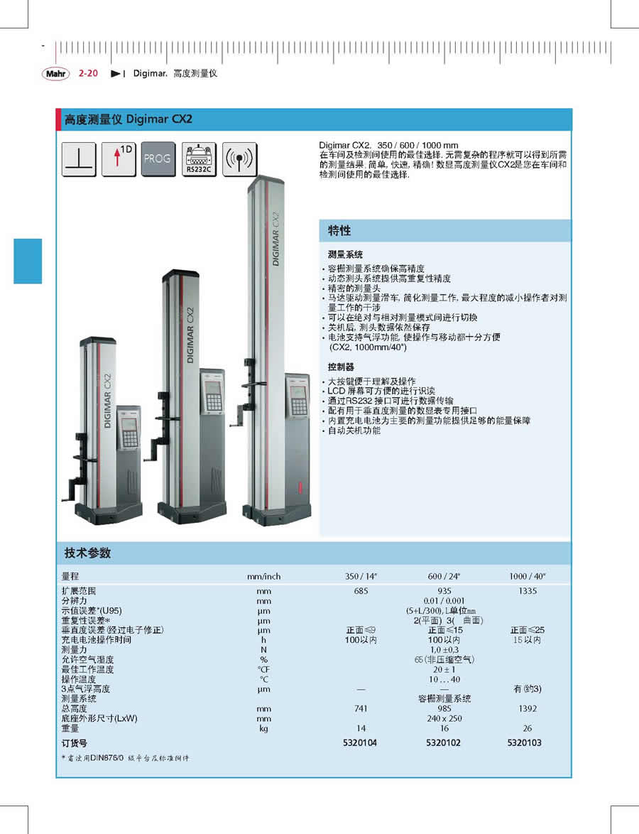 Digimar CX2數(shù)顯高度儀是在車間及檢測間使用的最佳選擇,手機測高儀,無需復雜的程序就可以得到所需的測量結果;簡單,語音測重測高儀,快速,瑞士丹青一維測高儀,精確!數(shù)顯高度測量儀CX2是您在車間和檢測間使用的最佳選擇。