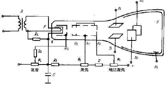 示波管的內部結構和供電圖示