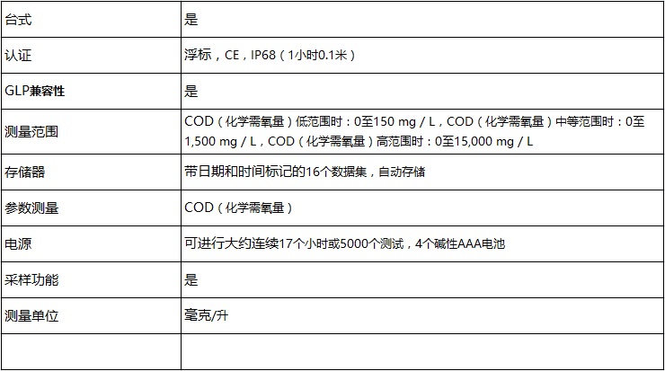 主要技術指標:一款堅固耐用的防水型單參數(shù)測量儀器,用于測量COD(化學需氧量)